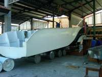 Proses pelepasan produk lambung speed boat dari cetakan ( moulding)